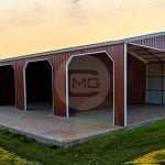 The garage shown above has measurements of 20’W x 25’L x 9’H. It is fully-enclosed and features two 8’x8’ roll-up garage doors on the front, one standard (36×80) walk-in door on the side, and a vertical roof.