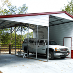 Custom Metal Building with Lean-to and utility storage which can be used for multiple purposes. The open area in this vertical roof custom building is 20 feet wide, 60 feet long and 12 feet tall – perfect to set-up an outdoor cafe or restaurant while the 20′ enclosed storage can be a utilized for culinary work. You can even set-up a small workshop and decor the outside open area for small parties and get-togethers. This Utility Building has an additional lean-to of 10x60x9′ with vertical roof/continues roof style. There is one 10×8′ feet garage door for easy moving of large items on the back wall and one 36×80 walk-in door for the regular in-out. Featured Utility Building is durable and robust enough to withstand high wind up to 130mph and snow load up to 30psf which makes it a perfect fit for extreme weather regions. Call us today at [site_phone] for customization and offers. Also Searched as Custom Metal Building with Lean-to Lean-to Custom Steel Building Utility Metal Building Custom Utility Building