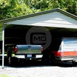This Two Car Parking Garage features Vertical Roof Style ‘ two garage doors 9×8 roll-up, one walk-in door and has been installed.
