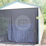 Certified Vertical Roof Enclosed Carolina Barn, 24’W x 46’L x 12’Ht. With (2) 12×12 Garage Doors one on each end, (2) 36×80 Walk In Doors Solid/No Windows. (2) 12’W x 46’L x 8’Ht. Enclosed Lean-to’s with (4) 10×7 Garage Doors, two on each end of lean-to’s.