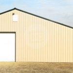 The steel building shown above is a customized storage unit with an additional lean-to located on the side. This 30’x30’x12’/9’ structure has been engineered with 14-gauge framing and is certified to withstand 140mph wind gusts. Also included is one 10’x10’ garage door located on the front end, one window, and one standard walk-in door. The 12×15 lean-to is partially enclosed with the front end open.