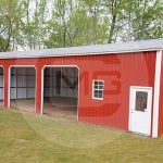 Upgrade your property with this versatile metal structure! This structure is equipped with a fully enclosed garage building and two side lean-tos, offering ample storage space and protection for your vehicles, tools, or equipment. This structure also features a burnished slate roof, clay paneling, and white trim.