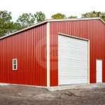 The featured 30’W x 40’L x 12’H building is an all-vertical, fully-enclosed garage. It includes one 10’x10’ garage door, one 9’x8’ garage door, one 36×80 walk-in door, and our Deluxe two-tone (wainscot) option. This particular building is utilized for storing tools and pieces of equipment. If you need assistance designing or choosing which structure best suits your needs, give one of our specialists a call today. Keep in mind, that we do not provide groundwork preparation or concrete services. Your site must also be level in order for us to install your unit.