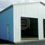 Featured above is a 30’W x 40’L x 14’H steel RV cover that has been installed with a vertical roof, double legs, and one side enclosed horizontally. Not only can this custom steel RV shelter be used to protect your home on the road from harsh weather elements, but it can also be used to shelter vehicles, large industrial or agricultural equipment, a repair shop, or a covered break area for your company.