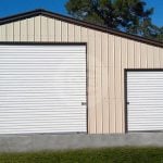 Presenting a 30×46 Two-tone metal garage with vertical roof style. This 30’x46′ meal garage is all vertical deluxe garage building that says all the walls and roof style are vertically placed which offers better durability with additional ridge cap and don’t let the snow on it for longer time designed for commercial purposes. All vertical deluxe style is the premium range of enclosed garage and workshops.