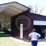 Like our regular roof, the boxed eave style offers horizontally installed panels. This is a more affordable option than our vertical style roof because this design does not require the hat-channel pieces that must be installed with a vertical roof. This A-frame designed roof is a good option for areas that experience heavier winds, but do not receive a lot of heavy rains or snowfalls.